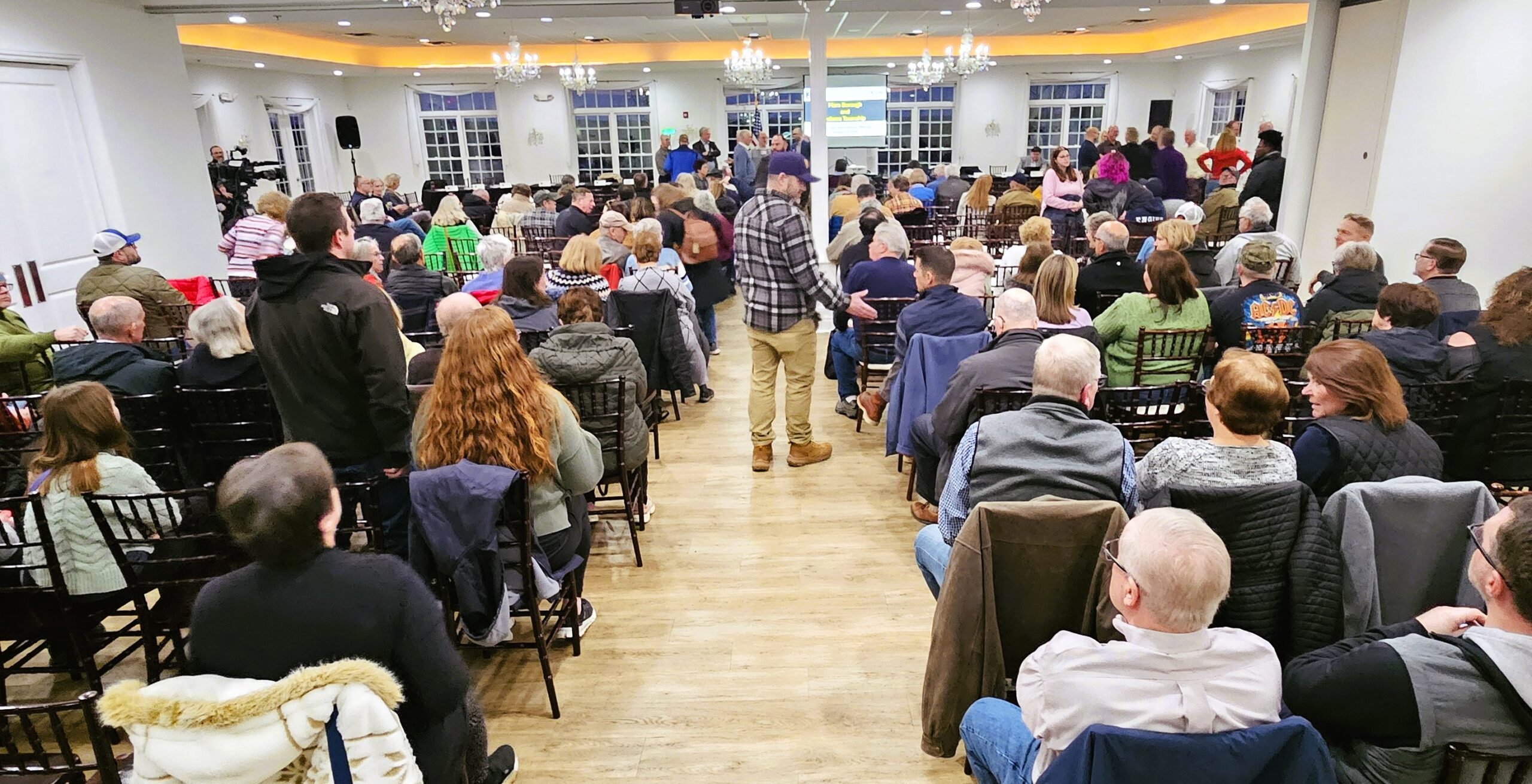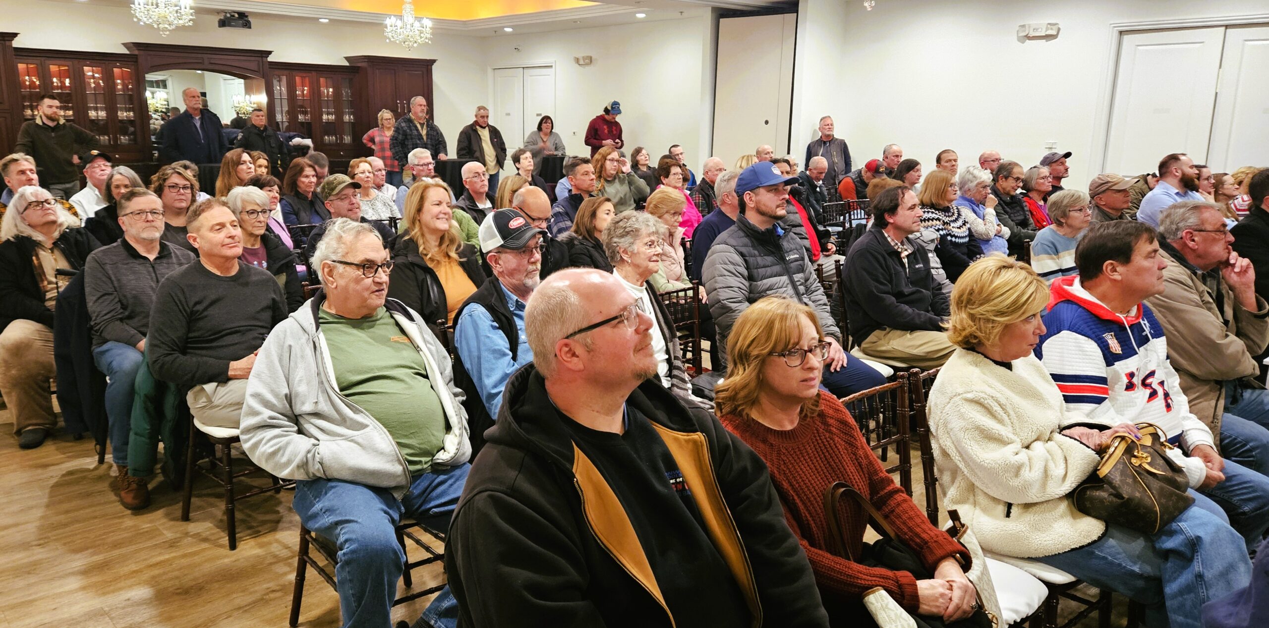 The meeting, held at Twelve Oaks Mansion, drew a full house—and then some. The parking lot reached capacity, and multiple Pittsburgh television stations, including KDKA, were on site covering the event.