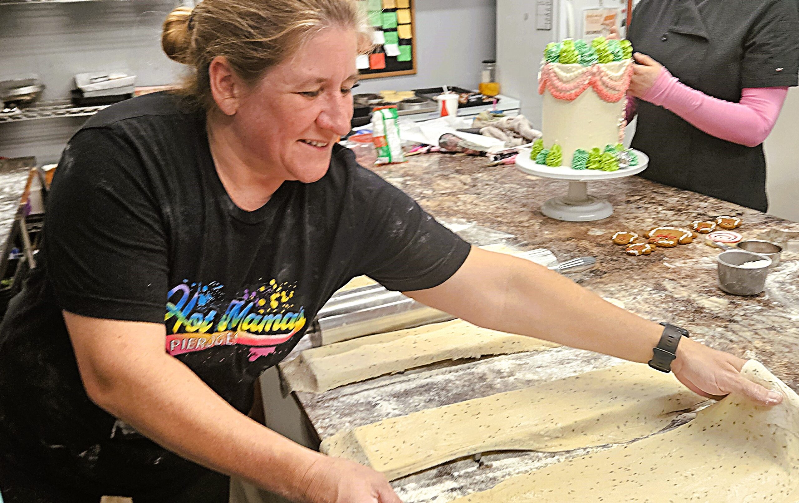 On one side of the room, trays of handmade perogies are being filled, sealed, and frozen — hundreds of dozens each year. On the other, cookies are rolling by the thousands, donuts are frying, and custom cakes are taking shape for weddings, birthdays, and family milestones.